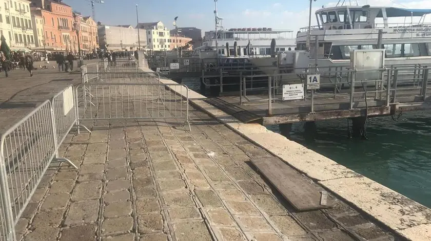 La foto, inviata da un lettore, vale più di mille parole. Documenta il grave degrado di Riva degli Schiavoni. La «passeggiata più bella del mondo» da cui si gode la visione del bacino San Marco, della Salute, dell’isola di San Giorgia. Visione oggi occlusa da file di Gran Turismo e transenne metalliche che delimitano gli accessi ai pontili. Una parte della pavimentazione in masegni è sprofondata, con voragini sott’acqua e avallamenti in superficie. Crepe larghe qualche centimetro tra le pietre, danni alla pavimentazione diventata un percorso a ostacoli. «Situazione di grande degrado», denuncia Emilio Vianello, «proprio nella parte di Riva dove ormeggiano decine di Gran Turismo provenienti dal Tronchetto e dalla Marittima. Ci sono danni evidenti, e adesso chi paga per sistemare quelle rive oltraggiate? Ci siamo rivolti al Comune ma non è successo nulla». La responsabilità dei danni secondo gli abitanti è chiaramente delle onde e del moto ondoso, che in estate non dà tregua. Grandi navi che passano spostando centinaia di migliaia di tonnellate d’acqua.- Gran Turismo e piccole imbarcazioni, taxi e vaporetti del servizio pubblico. Ferite continue alle fondazioni. Azione erosiva dell’acqua che pian piano demolisce le congiunzioni tra i mattoni e la pietra, provocando crolli a catena. Pochi metri più in là un altro danno provocato dai moto ondoso. Blocchi di pietra d’Istria spezzati e in parte transennati con scotch bianco e rosso. Colpi terribili inferti da onde e traffico non sempre controllato.