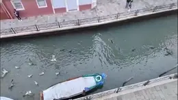 Nel pieno centro della città le due specie si contendono i banchi di pesci. Un esempio di come la natura entri nella quotidianità