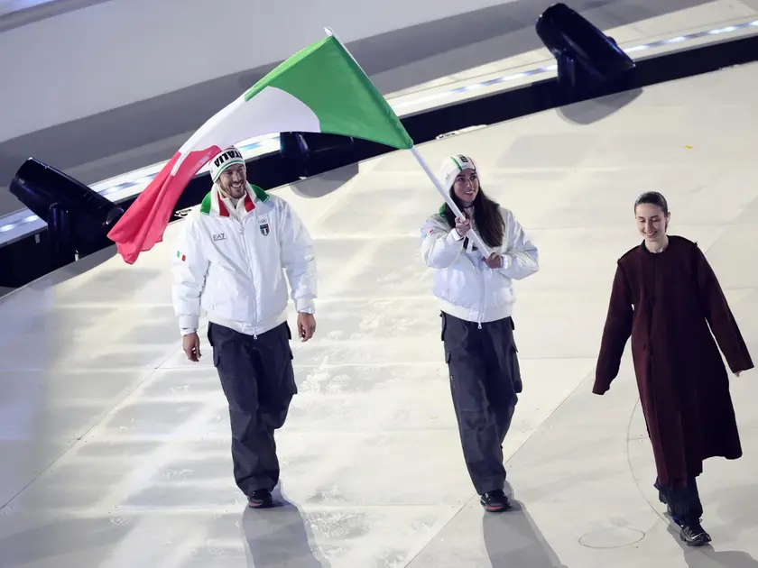 All’Arena la cerimonia si apre con un omaggio ai grandi personaggi dell’Opera. A guidare la delegazione del nostro Paese la campionessa friulana e Davide Ghiotto