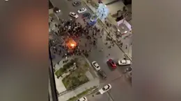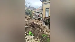 Incendio nel padiglione Serbia ai Giardini della Biennale durante i lavori di ristrutturazione. Densa nube di fumo visibile a distanza
