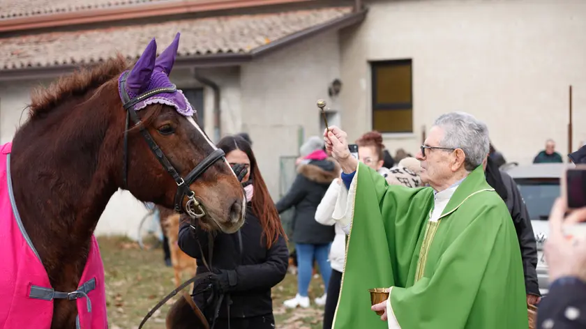Hanno partecipato anche un pony e due cavalli, sold out di animali e padroni fuori ad attendere il prete, don Rinaldo Gusso