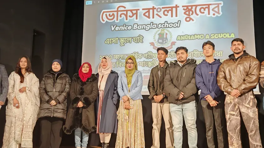 In prima fila le madri, i papà, le sorelle e i fratelli più piccoli, ad applaudire. E poi le docenti, che hanno ringraziato una per una per e che rispondono al nome di Neherun Nesa Moly, Nisha Gazi, Manuela Giordano. Il presentatore della serata, Mehdi, invitava il pubblico ad applaudire, per sciogliere la tensione. La Venice Bangla School solo nel 2025 ha insegnato l’italiano a ben mille bengalesi. Un fiore all’occhiello, che da vent’anni è portato avanti da Kamrul Syed.