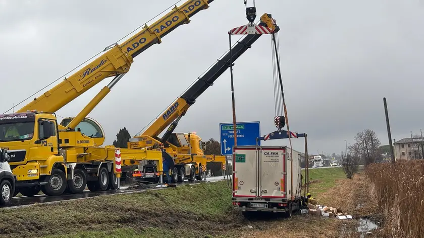 Camion fuori strada sulla statale 14 a Ceggia, caos traffico