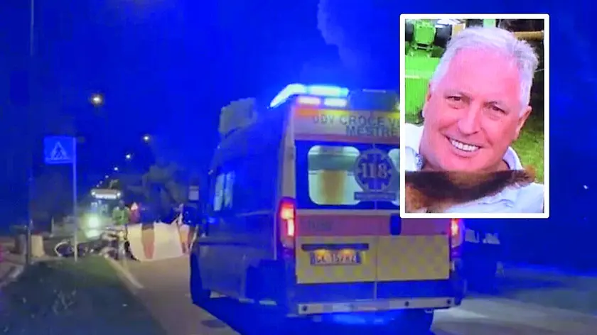 Il Suem 118 accorso sul luogo dell’incidente tra gli Alberoni e Malamocco, vicino alla fermata Actv Galla; nel riquadro, la vittima Silvio Capuzzo