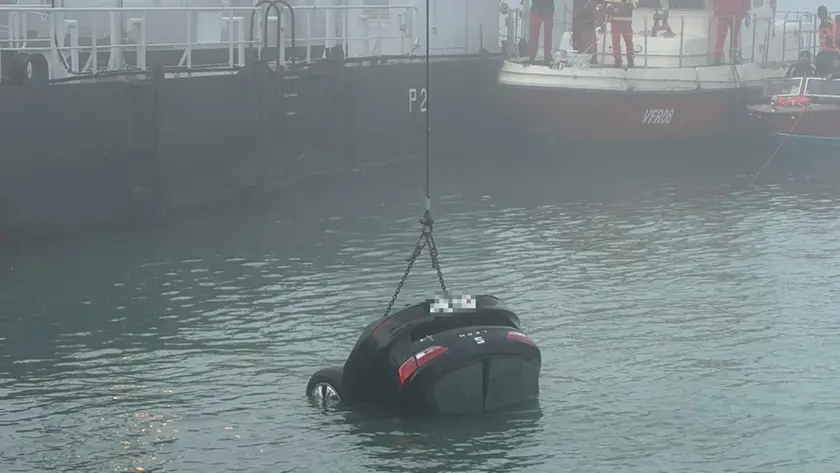 Un automobilista sbaglia rampa per il ferryboat al Lido di Venezia e finisce con l’auto in laguna. Salvati lui e il cane, traffico dei ferry sospeso per il recupero del veicolo