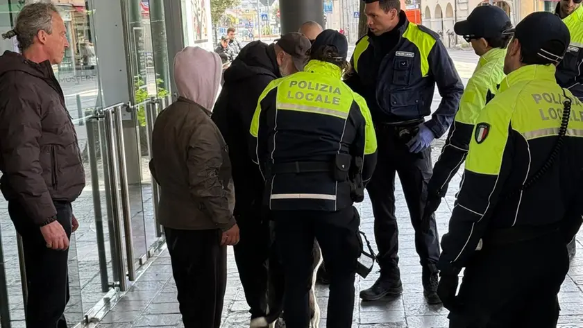 Animata discussione sotto al portico di Ca’ Mestre dopo che una cittadini aveva segnalato la presenza di due senzatetto con bestiola al seguito. L’intervento della Locale contestato