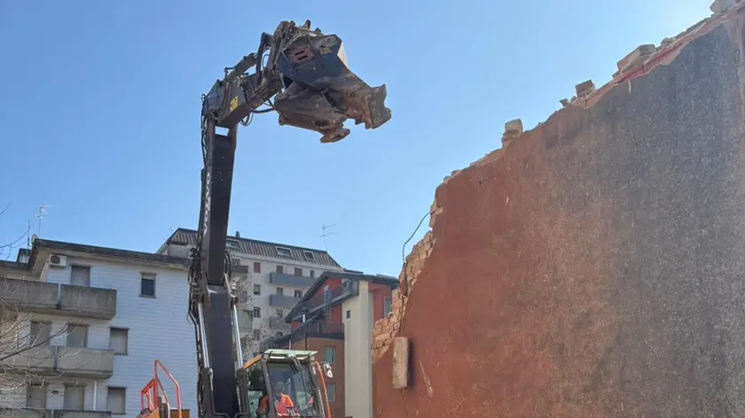 Ruspe in azione in via Dante 117 vicino all’ingresso del sottopasso ciclopedonale per Marghera. I colpi di benna distruggono quella che per anni ha fatto paura: la casa “rossa” vicino all’hotel Giovannina. “La casa degli orrori” la chiamano gli abitanti del rione Piave perché nel retro della casa abbandonata il consumo di droga era pratica quotidiana.