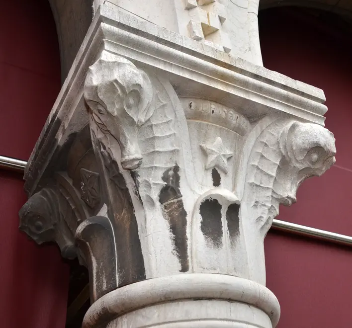 Interpress/Mazzega Venezia, 03.12.2016.- Capitelli mercato del pesce di Venezia raffiguranti barche nasse e pesci