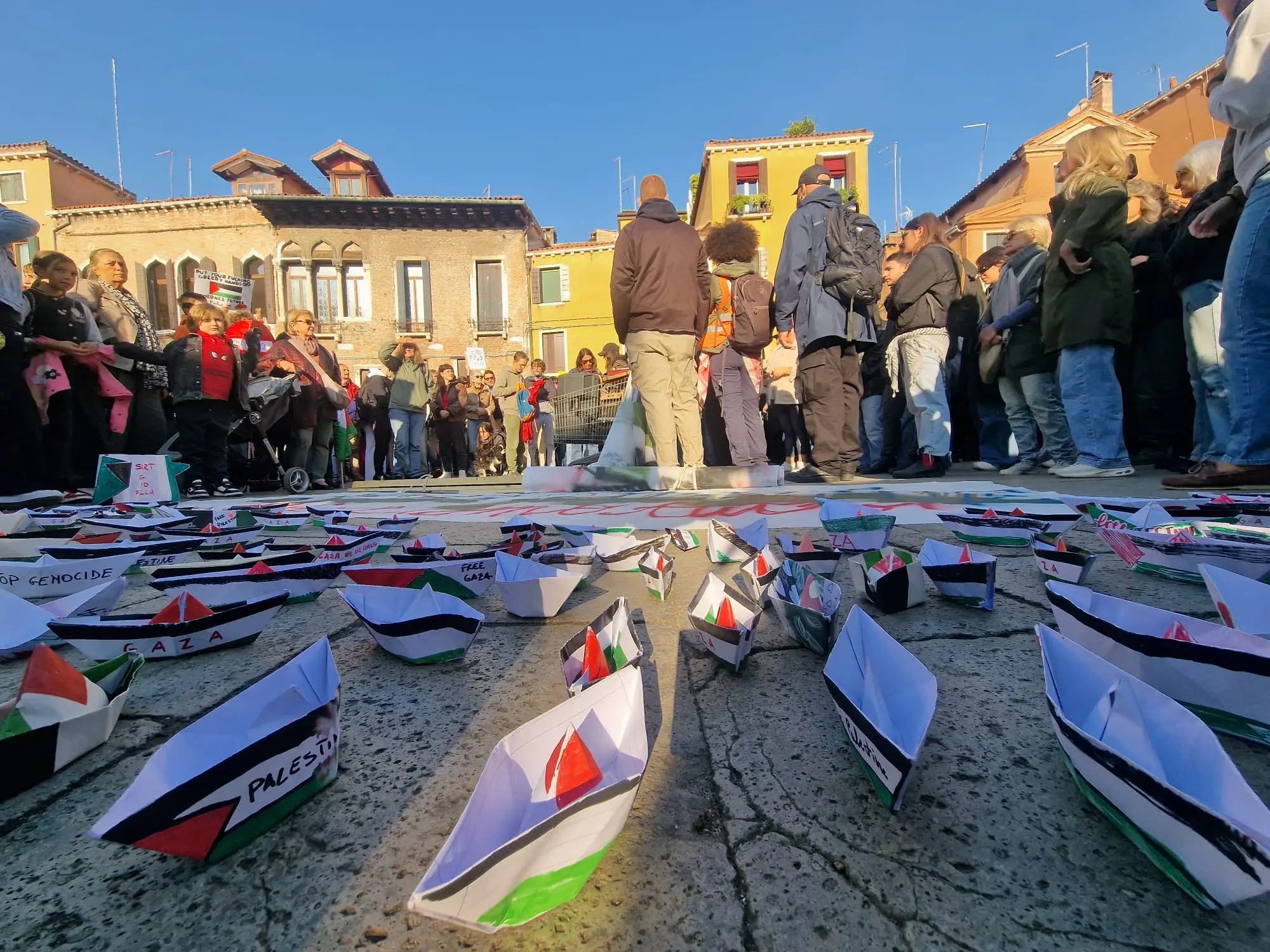 In corteo moltissime bandiere della Palestina, della Cgil e dei sindacati di base, del coordinamento degli Studenti medi e dell'Unione degli universitari, i Comitati No Inceneritore. In testa al corteo i centri sociali veneziani, dal Rivolta al Morion, con il leader storico Luca Casarini, capo missione della nave Mediterranea: «Questo movimento è il risultato di due anni di complicità del governo italiano, che non ha mai fatto niente per fermare Israele».