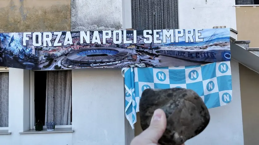 Un sasso di medie dimensioni è stato scagliato da una mano ignota, il 2 gennaio sera, contro un’abitazione addobbata da bandiere e striscioni del Napoli calcio