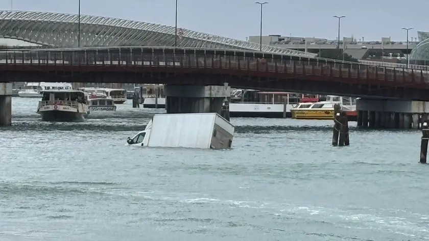 Venezia, furgone finisce in acqua al Tronchetto: non aveva il freno a mano inserito