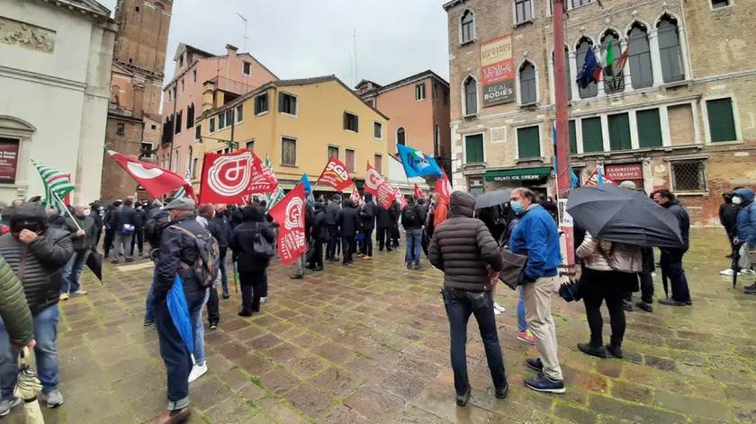 In piazza anche Francesco Zingarlini, consigliere comunale (Fratelli d’Italia) e autista Actv: «Quanto fatto finora non basta, rischiamo noi lavoratori e una città intera».