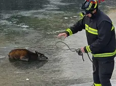 Vigili Fuoco salvano cervo intrappolato in un lago ghiacciato
