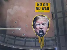 Greenpeace esibisce immagine di Trump che vomita petrolio, 'no oil, no war'