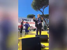 Una enorme bandiera palestinese fatta sventolare da Palazzo Madama