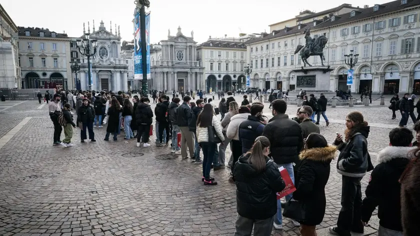 A Torino coda di chilometri di giovani in piazza San Carlo per Kid Yugi