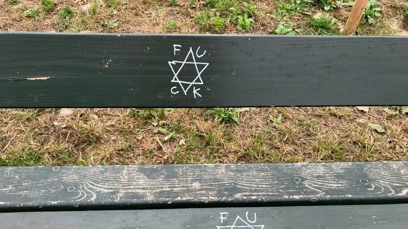 In un parco sulle panchine una stella a sei punte e insulti