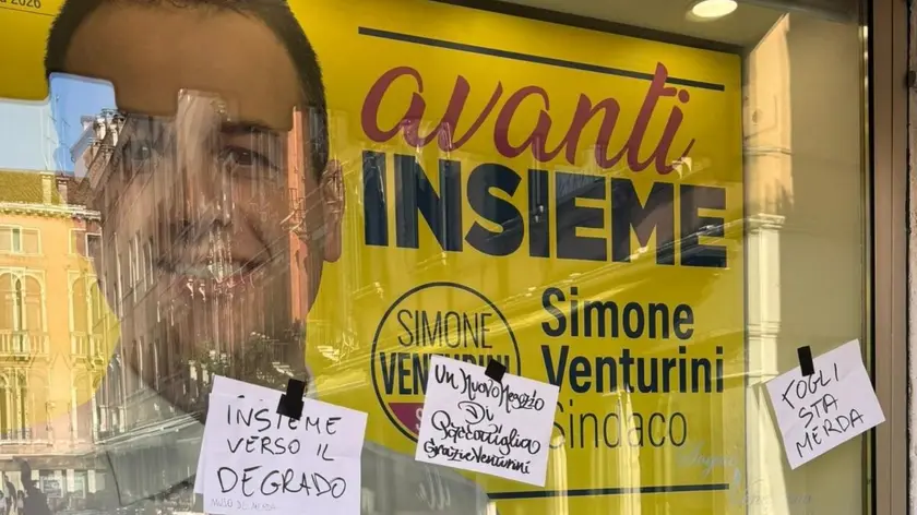 Biglietti offensivi attaccati alla sede elettorale di Venturini a Venezia