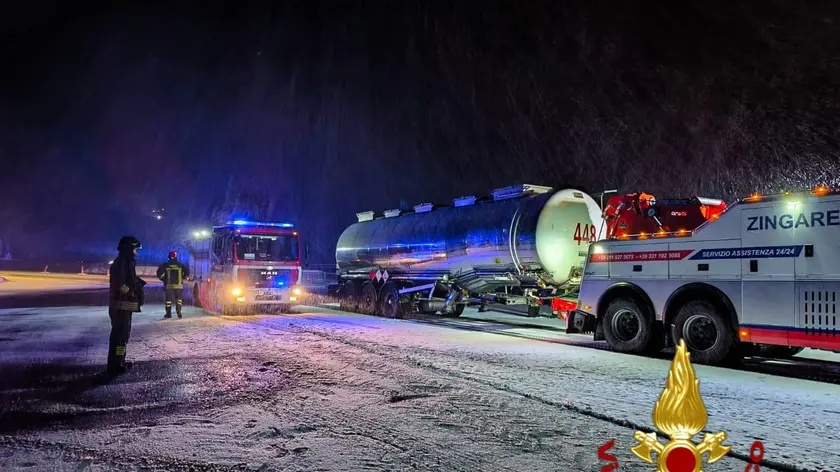 Intervento dei vigili del fuoco ieri sulla tratta autostradale A32 Torino-Bardonecchia, all'interno della galleria Cels, tra Susa e Oulx in direzione Bardonecchia. Intorno alle 17.30 un tir ha perso sostanze pericolose da una cisterna durante il transito. Sul posto sono intervenute squadre specializzate Nbcr (nucleare, biologico, chimico, radiologico) dei vigili del fuoco per la messa in sicurezza dell'area. A partire dalle 18, otto squadre del comando provinciale di Torino, per un totale di 24 unità, hanno operato nel tratto di Chiomonte, dove la cisterna contenente sostanze pericolose si era staccata dalla motrice che la trainava. La cisterna è stata portata all'esterno della galleria e messa in sicurezza per consentire il travaso del contenuto in una cisterna di soccorso appositamente fatta arrivare sul posto. Le operazioni di travaso sono iniziate intorno alle 3 della notte e si sono concluse alle 5 del mattino, con il rientro delle squadre e la fine dell'intervento. Non si registrano persone coinvolte. L'intervento si è svolto su un tratto autostradale già chiuso al traffico per lavori di manutenzione programmati. (ANSA).