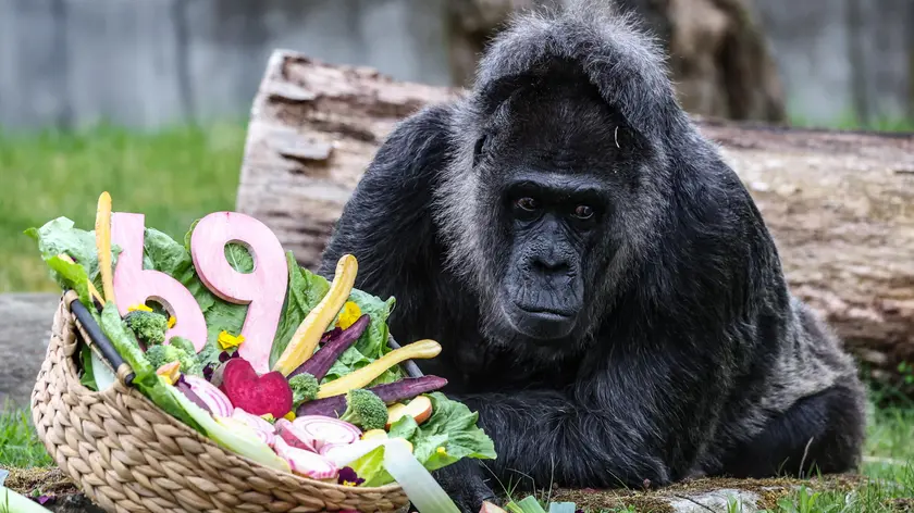 Compleanno da record allo zoo di Berlino, la gorilla Fatou compie 69 anni