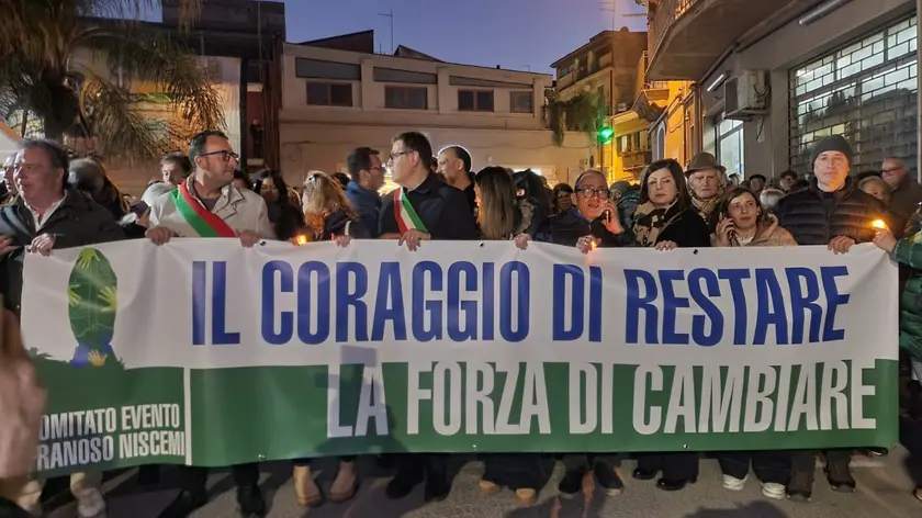 (ANSA) - NISCEMI, 25 FEB - A un mese dalla frana che ha colpito Niscemi (Caltanissetta), migliaia di cittadini sono scesi in piazza, per un corteo e una fiaccolata. "Niscemi rialzati", è stato detto più volte dai partecipanti. In testa al corteo, uno striscione con scritto, "il coraggio di restare, la forza di cambiare". All'iniziativa hanno preso parte l'amministrazione comunale e il consiglio. Simbolicamente, una sosta è stata fatta davanti all'ingresso, ormai sbarrato, della strada provinciale 12, compromessa dalla frana. Il corteo è stato indetto dal comitato "Evento franoso Niscemi 2026", che ha chiamato a raccolta la città, senza appartenenze politiche o di partito. "Dobbiamo essere forti e avere un'unica voce, per ripartire", è stato detto dai partecipanti. Intervenuto anche il vescovo Rosario Gisana. Il corteo, partito da largo Giugno, ha percorso alcune aree limitrofe alla zona rossa, per arrivare fino al santuario di Maria santissima del bosco. (ANSA).