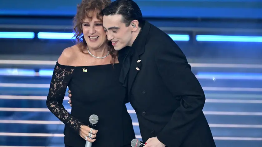 (ANSA) - ROMA, 28 FEB - La Palestina sul palco dell'Ariston. Fiorella Mannoia indossava una piccola spilla della Palestina appuntata sulla maglia nera che indossa nel duetto con Michele Bravi in Domani è un Altro Giorno, altro omaggio a Ornella Vanoni. (ANSA).