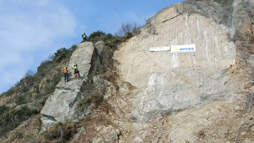 (ANSA) - GENOVA, 13 FEB - Trecento chili d'esplosivo sono serviti per far esplodere un 'masso ciclopico' da 2.000 tonnellate alto come un palazzo di quattro piani in bilico sulla parete di roccia franata il 25 gennaio scorso sulla statale Aurelia tra Vesima e Arenzano nel ponente di Genova. L'operazione, eseguita da personale specializzato per il disgaggio di massi pericolanti, è stata effettuata nel primo pomeriggio d'intesa tra Anas, Aspi, Regione Liguria e i Comuni interessati. Durante le operazioni di disgaggio la circolazione ferroviaria Genova-Ventimiglia è rimasta sospesa tra Voltri e Cogoleto con la cancellazione di otto treni regionali. L'autostrada A10, unica alternativa all'Aurelia, è invece rimasta regolarmente aperta per garantire almeno una via di collegamento tra il ponente ligure e il levante della regione. All'operazione erano presenti, tra gli altri, il viceministro delle Infrastrutture Edoardo Rixi, l'assessore regionale alle Infrastrutture Giacomo Giampedrone, il sindaco di Arenzano Francesco Silvestrini, l'amministratore delegato di Anas Claudio Gemme e il responsabile della struttura territoriale di Anas Liguria Nicola Dinnella. Le cariche sono state disposte dai rocciatori in punti prestabiliti e individuati per distaccare i volumi rocciosi da eliminare: il masso pericolante aveva dimensioni di oltre 720 metri cubi con un peso di circa 2.000 tonnellate. "Oggi siamo qui per il primo intervento importante di messa in sicurezza della strada - dichiarato l'ad di Anas Claudio Gemme - il masso, con dimensioni pari a un palazzo di quattro piani, rappresentava un rischio per la sicurezza pubblica e le infrastrutture circostanti". L'esplosione è propedeutica alla riprofilatura della la parete di roccia dove nei prossimi mesi Anas farà un intervento mirato a mitigare e prevenire il dissesto idrogeologico. L'obiettivo è comunque riaprire la strada Aurelia, almeno su una corsia, il 1 marzo. (ANSA).