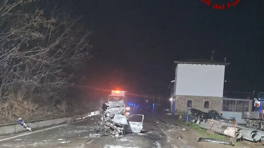 (ANSA) - BOLOGNA, 09 FEB - Il conducente di una utilitaria è morto carbonizzato in un incidente avvenuto verso l'una della scorsa notte sulla Porrettana Nord, nel territorio di Marzabotto, in provincia di Bologna. La sua auto, durante una manovra di sorpasso, si è scontrata frontalmente con un autocarro che proveniva dalla direzione opposta, poi è finita fuori strada e ha preso fuoco. Sono intervenuti vigili del fuoco, 118 e carabinieri ma, all'arrivo dei soccorritori, l'uomo era già morto carbonizzato all'interno dell'abitacolo. Sono in corso gli accertamenti per identificarlo con certezza. Il tratto della Porrettana è rimasto chiuso al traffico per diverse ore e solo in mattinata è stato riaperto. (ANSA).