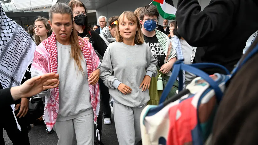 (ANSA) - STOCCOLMA, 07 OTT - L'attivista svedese Greta Thunberg è atterrata questo pomeriggio all'aeroporto di Stoccolma Arlanda insieme ad altri attivisti svedesi che hanno fatto parte della Flotilla. Tra questi c'era anche la parlamentare svedese Lorena Delgado Vargas. Al loro arrivo nella sala arrivi sono stati accolti da applausi e grida "free Palestine". A breve gli attivisti terranno una conferenza stampa. (ANSA).