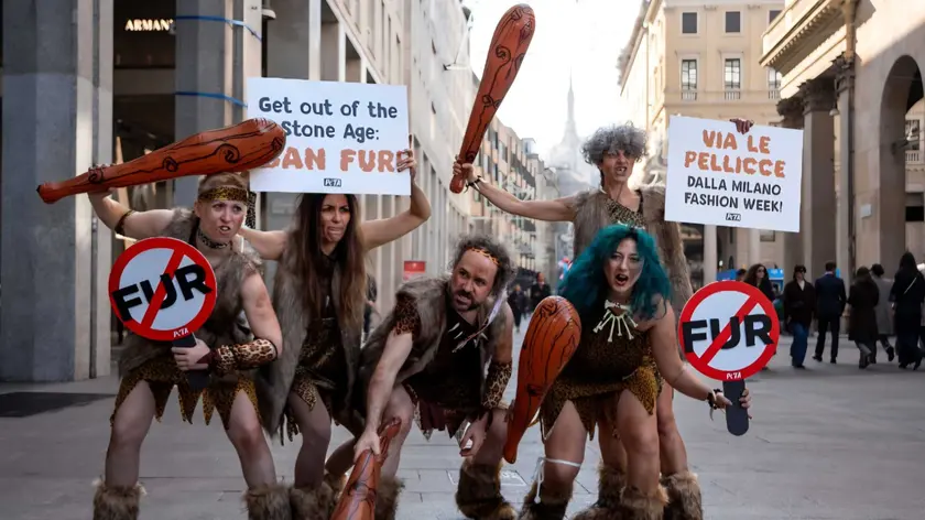 I 'cavernicoli ' di Peta contro le pellicce alla Milano Fashion week