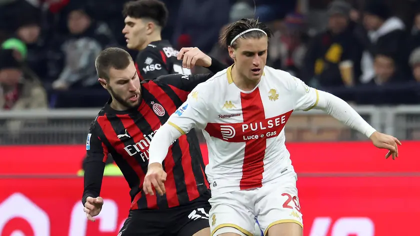 (ANSA) - ROMA, 08 GEN - Finisce 1-1 al Meazza la sfida tra Milan e Genoa. La squadra di De Rossi passa in vantaggio con Colombo, ex di turno, che trafigge la difesa del Milan al 28'. Nella ripresa i padroni di casa giocano praticamente sempre nella metà campo avversaria ma non riescono a sbloccare il risultato. Ci pensa Leao al 92' a pareggiare i conti. Al 96' rigore per il Genoa per un fallo su Ellertsson: dopo tre lunghi minuti di revisione al Var e proteste, sul dischetto va Stanciu che spara il pallone fuori. Finisce 1-1 con i rossoblu che recriminano per aver sprecato l'occasione di aggiudicarsi i tre punti a tempo scaduto. I rossoneri salgono a 39 punti, tre in meno dell'Inter capolista. I liguri hanno invece 16 punti, tre in più del Verona terzultimo. (ANSA).