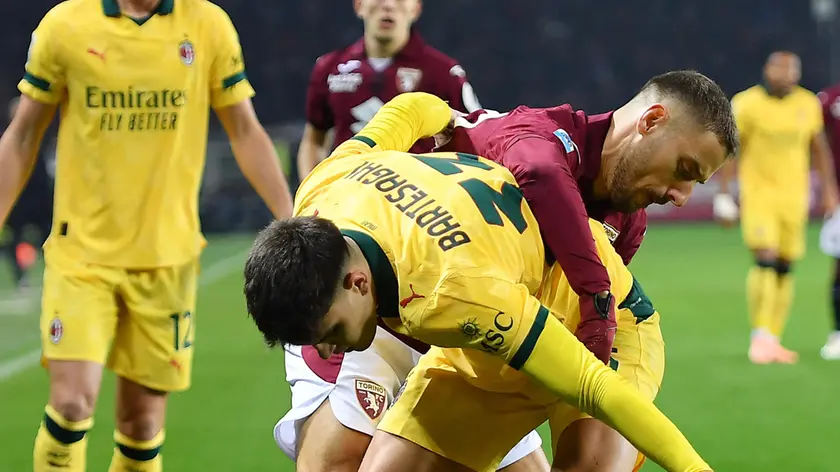 (ANSA) - ROMA, 08 DIC - Entra Pulisic, il Milan ribalta la partita, batte il Torino in trasferta e si riprende la testa del campionato, pari merito col Napoli. Finisce 3-2, dopo che i granata erano passati avanti con il doppio vantaggio. Apre Vlasic al 10' su rigore (stavolta Maignan sfiora ma non para), Zapata fa il 2-0 al 17'. Sembra la serata storta per la squadra di Allegri, che squalificato segue la partita dal box, ma al 24' Rabiot la riapre con un gran tiro da fuori. Leao esce per infortunio muscolare. Nel secondo tempo gran forcing rossonero, ma tutto cambia al minuto 22' con l'ingresso di Pulisic, non titolare per un attacco febbrile ieri: passano solo 43'', e Salemaekers pesca l'amnericano solo in area, stop e sinistro per il pari. Al 32' ancora Pulisic, su cross di Ricci, fissa il 3-2. C'è tempo anche per la terza rete personale dell'americano, ma viziata dal fuorigioco e dunque annullata. Per il Torino e' la terza sconfitta di fila in campionato (ANSA).