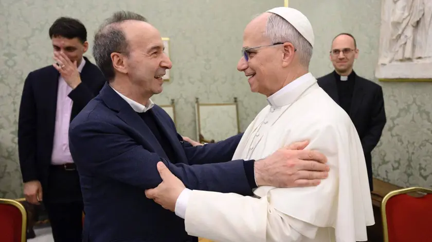 (ANSA) - CITTA' DEL VATICANO, 04 DIC - Questo pomeriggio al Palazzo Apostolico vaticano Papa Leone XIV ha incontrato Roberto Benigni insieme a Giampaolo Rossi, amministratore delegato della Rai, e a Simona Ercolani, Ceo e direttore creativo di Stand by Me, produttrice, insieme a Vatican Media, del monologo "Pietro un uomo nel vento", che sarà trasmesso da Rai1 il prossimo 10 dicembre in prima serata, e che è stato presentato questa mattina in anteprima mondiale alla stampa al MAXXI di Roma. Il Papa - riferisce la Sala stampa vaticana - ha visto alcuni estratti del monologo: "Che bello, parla di amore", ha commentato al termine. Durante l'incontro, prima della proiezione, il Papa e Benigni hanno parlato di cinema e de "La vita è bella", che il Papa ha elencato fra i suoi quattro film preferiti, e di "La vita è meravigliosa" di Frank Capra. Il Papa e Benigni hanno parlato della vita di San Pietro, di Dante e di Sant'Agostino, della Divina Commedia e delle Confessioni. All'incontro hanno preso parte anche il prefetto del Dicastero per la Comunicazione, Paolo Ruffini, il direttore di Vatican Media, Stefano D'Agostini, e alcuni collaboratori di Benigni. (ANSA).