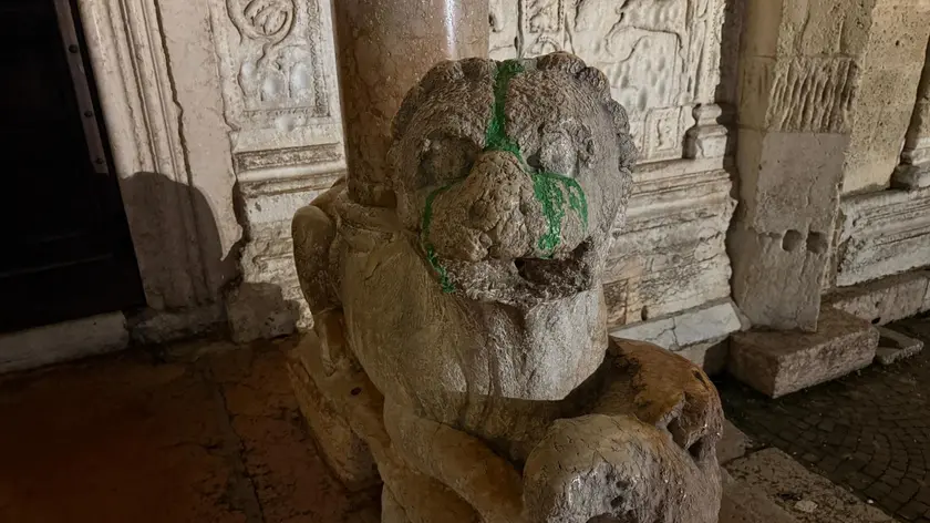 Imbrattati a Verona i leoni della basilica di San Zeno