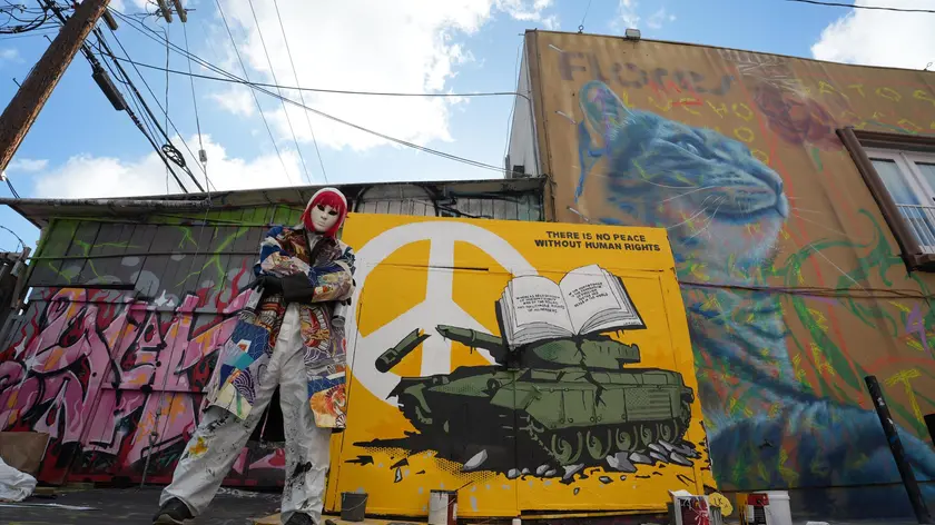 (ANSA) - ROMA, 28 APR - A Los Angeles Laika avvia il nuovo progetto "States of Injustice - Chapter 2: The Collapse of Democracy". Il primo intervento è un murale a Melrose Avenue: la Dichiarazione Universale dei Diritti Umani (1948) cade su un carro armato americano, distruggendolo, con la scritta "Non c'è pace senza diritti umani". L'artista interviene in una fase critica degli Stati Uniti, "tra disuguaglianze, razzismo e crisi dello stato di diritto". "La nuova presidenza Trump e l'ascesa della cultura Maga stanno trasformando profondamente il paese… un modello fondato su razzismo, deportazioni, repressione del dissenso e polarizzazione sociale" spiega. Laika denuncia anche il ruolo internazionale degli Usa, tra guerre, destabilizzazione e un sistema che "continua a legittimare la violenza come strumento politico ed economico". Durante il lavoro ha incontrato lo street artist Shepard Fairey (Obey), segnando l'avvio del progetto negli Stati Uniti. (ANSA).