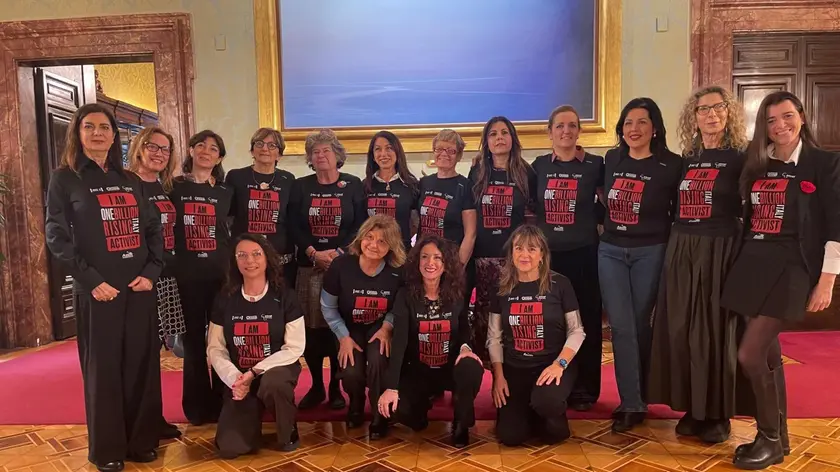 (ANSA) - ROMA, 11 FEB - Le parlamentari progressiste per One Billion Rising, "il piu grande flashmob al mondo contro la violenza maschile sulle donne". Tutte insieme con la maglia di One Billion Rising per sostenere il movimento internazionale fondato dalla drammaturga americana V al secolo Eve Ensler, autrice dei rivoluzionari "Monologhi della Vagina". Giunto al suo 13esimo anno di vita, One Billion Rising coinvolge circa 90 Paesi nel mondo, dall'Africa all'India, dalle Filippine agli Stati Uniti, dall'Europa dove donne e uomini si mobilitano con flashmob, letture, spettacoli e musica. L'obiettivo è uno solo: dire "basta" alla violenza maschile contro le donne. Il prossimo sabato a Roma si svolgerà il flashmob in Piazza del Campidoglio alle 11.30, organizzato anche grazie al supporto dell'Assessrato alle Pari Opportunità di Roma Capitale. One Billion Rising è inoltre accanto alla mobilitazione dei centri anti violenza contro il ddl Bongiorno che stravolge e tradisce la prima stesura sul consenso nei rapporti sessuali, cancellando proprio la parola consenso. Le parlamentari intervenute sono Anna Bilotti Laura Boldrini,Susanna Camusso, Ilaria Cucchi, Cecilia D'Elia, Barbara Floridia, Vincenza Rando Valentina Ghio Barbara Floridia, Ada Lopreiato, Alessandra Maiorino, Cristina Tajani, Simona Malpezzi, Dafne Musolino, Elisa Pirro, Annamaria Furlan, Anna Rossomando, Daniela Sbrollini, Gilda Sportiello, Valeria Valente, Ylenia Zambito. (ANSA).
