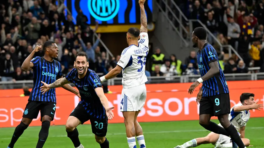 (ANSA) - ROMA, 21 APR - L'Inter è la prima finalista di Coppa Italia. Nella semifinale di ritorno la squadra nerazzurra batte 3-2 il Como in rimonta a San Siro, dopo essere stata sotto 2-0. Occasione sfumata per i lariani che avevano condotto per tre quarti di gara. In gol Baturina al 32' del primo tempo. Nella ripresa il raddoppio di Da Cunha al 6'. Poi si scatena Calhanoglu: prima accorcia al 24' e realizza una doppietta personale per il 2-2 momentaneo al 41'. Decisivo il gol di Sucic al 44'. Domani la sfida tra Atalanta e Lazio che deciderà la seconda finalista. La finale, su gara unica, è in programma il 13 maggio all'Olimpico di Roma. (ANSA).