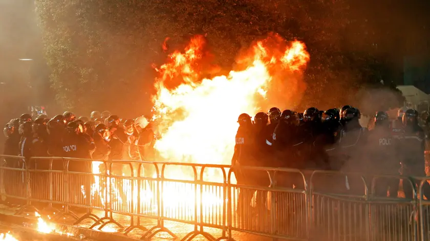 L'opposizione di centrodestra protesta in Albania, feriti 14 agenti