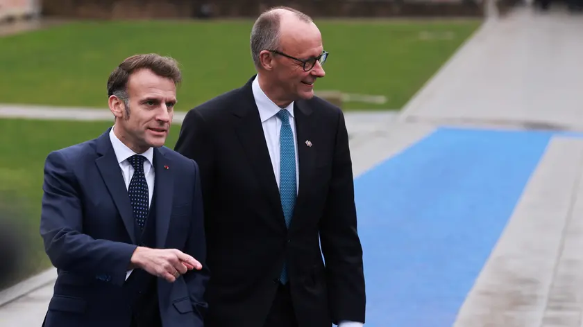 (ANSA) - BILZEN (RIJKHOVEN), 12 FEB - "Condividiamo un sentimento di urgenza: l'Europa deve agire con chiarezza". Lo ha detto il presidente francese Emmanuel Macron in un punto stampa castello di Alden Biesen, accanto al cancelliere tedesco Friedrich Merz, dopo il pre-vertice e prima del summit dei leader Ue. "La priorità è una reazione anzitutto a brevissimo termine che consiste nel mettere in atto tutto ciò su cui siamo d'accordo", ha affermato. "Dobbiamo andare veloci e avere decisioni molto concrete entro giugno": "Se non si avanza a 27, dandoci la possibilità di fare cooperazioni rafforzate per andare più rapidamente". (ANSA).