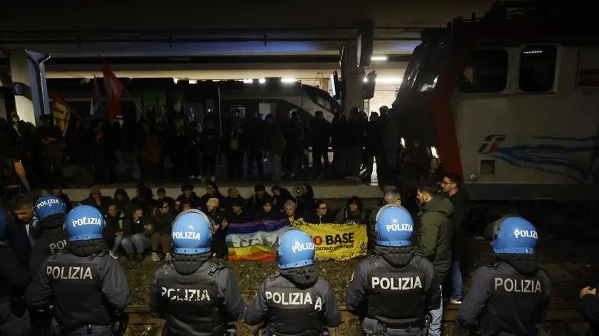 (ANSA) - PISA, 12 MAR - Manifestanti della sinistra radicale e dell'area antagonista stanno paralizzando il traffico ferroviario alla stazione di Pisa dopo avere bloccato un treno merci, in transito al binario 3, che trasporta mezzi militari. La circolazione ferroviaria è momentaneamente interrotta. I manifestanti stanno occupando il binario dove si trova anche il treno merci, mentre sul posto le forze dell'ordine stanno vigilando sulla situazione. (ANSA).