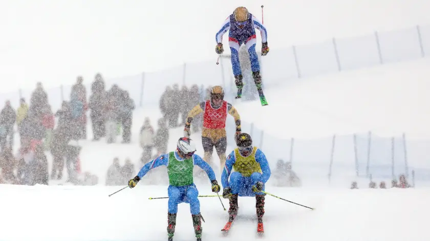 (ANSA) - LIVIGNO, 21 FEB - Doppietta Italia nello Skicross olimpico di Milano Cortina. Sotto la fitta nevicata di Livigno Simone Deromedis ha vinto l'oro precedendo l'altro italiano in gara, Federico Tomasoni. (ANSA).
