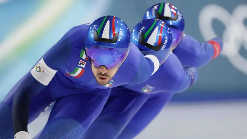 (ANSA) - MILANO, 17 FEB - L'Italia conquista la medaglia d'oro nell'inseguimento uomini del pattinaggio di velocità a Milano Cortina. Gli azzurri guidati da Davide Ghiotto hanno battito in finale gli Stati Uniti e regalano la 24/a medaglia all'Italia. (ANSA).