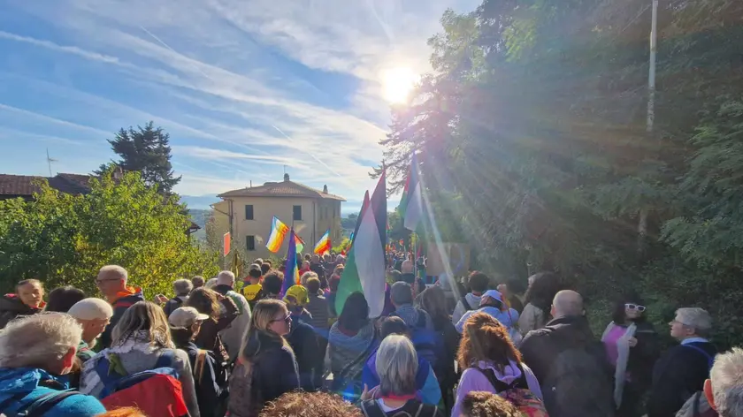 (ANSA) - PERUGIA, 12 OTT - E' una marcia PerugiAssisi "che non si vedeva dal 2001 quando ci fu pochi giorni dopo l'invasione dell'Afghanistan seguita all'attacco alle Torri gemelle" quella di oggi. A dirlo è Flavio Lotti, da sempre organizzatore dell'evento, interpellato dall'ANSA. "E' un fiume di gente, 14 chilometri ininterrotti da Perugia ad Assisi" ha aggiunto. "Tutti quelli che amano la pace non possono che essere felici di questa partecipazione" ha sottolineato Lotti. (ANSA).