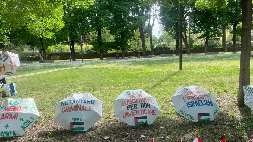 (ANSA) - FIRENZE, 19 APR - Bandiere e striscioni di Firenze per la Palestina questo pomeriggio davanti al Teatro del Maggio contro la prima rappresentazione dell'opera 'The Death of Klinghoffer', regia di Luca Guadagnino, che apre ufficialmente l'88/o Festival del Maggio Musicale Fiorentino e che è ispirata all'omicidio del cittadino Usa di origine ebraica Leonardo Klinghoffer nell'attacco alla nave da crociera Achille Lauro nel Mediterraneo da parte di terroristi del Fronte di Liberazione della Palestina nel 1985. "L'opera che state per vedere riguarda un episodio del 1985 - si legge in un volantino - L'evento è senza dubbio da condannare, ma chiediamoci come mai si sia scelto oggi in pieno genocidio di mettere in scena questo lavoro. Ci pare evidente l'intento di presentare la resistenza palestinese sotto l'aspetto terroristico". I promotori, un gruppo ridotto, hanno confermato quanto detto alcuni giorni fa, ovvero che la contestazione nasce dalla volontà di sottolineare come l'opera dia una lettura ''particolare del dramma e della crisi palestinese''. In particolare si evidenzia come l'opera prenda il via con due cori, quello degli esuli palestinesi e quello degli ebrei. ''Ci porta istintivamente a pensare che il contrasto sia tra i palestinesi e gli ebrei - dicono quelli di Firenze per la Palestina -, mentre il contrasto è tra i palestinesi e gli israeliani che hanno occupato la Palestina. Quindi non è una lotta tra due civiltà, tra due religioni, è una lotta tra un occupante e un occupato". Fuori dal teatro i ProPal fiorentini hanno allestito un presidio con bandiere, striscioni, ombrelli con scritte come pace, meno armi, 'Gaza new Auschwitz per non dimenticare' e 'Boicotta i prodotti israeliani'. (ANSA).