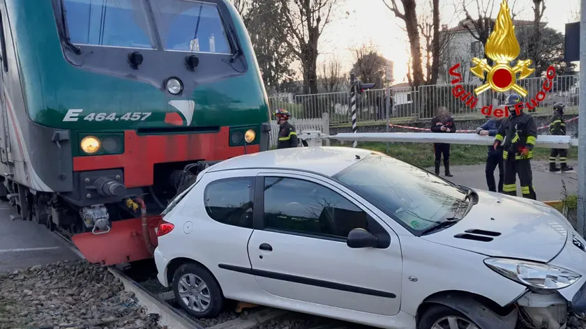 (ANSA) - MILANO, 22 FEB - Uno scontro tra una vettura e un treno della linea Mortara-Rogoredo si è verificato nel pomeriggio intorno alle 17 all'ingresso del Comune di Abbiategrasso, nel Mianese. La vettura con all'interno due anziani, per cause in corso di accertamento, è stata speronata dal convoglio ferroviario a bordo del quale c'erano circa trecento passeggeri. Non si registrano feriti o persone coinvolte anche per la bassa velocità con cui il treno stava transitando. Sul posto i Vigili del fuoco di Abbiategrasso, Corbetta e della sede centrale di Milano che hanno provveduto a mettere in sicurezza l'area. Soltanto pochi minuti fa i trecento passeggeri del treno sono stati fatti scendere per andare alla vicina stazione di Abbiategrasso. La linea è ancora interrotta alla circolazione. (ANSA).