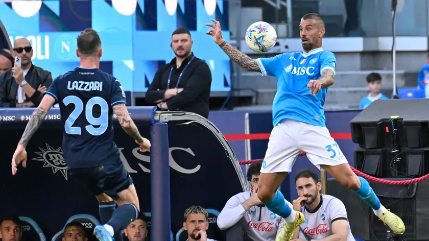 (ANSA) - NAPOLI, 18 APR - La Lazio batte 2-0 il Napoli in un anticipo della 33/a giornata di serie A e l'Inter ringrazia, confermando il -12 sugli azzurri a cinque giornate dalla fine del campionato. Al Maradona, nel primo tempo i biancocelesti segnano con Cancellieri e sbagliano un rigore con Zaccagni - che mette fuori la palla respinta da Milinkovic Savic - raddoppiando però nella ripresa con Basic. (ANSA).
