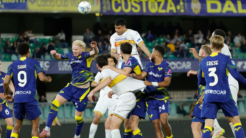 (ANSA) - ROMA, 25 APR - Verona e Lecce pareggiano 0-0 nel match del sabato sera al Bentegodi: gli ospiti ci provano con più insistenza ma non trovano la via del gol; gli scaligeri segnano nel recupero ma il Var annulla. Un punto che serve a poco ai padroni di casa, mentre i pugliesi allungano a +1 sulla Cremonese terzultima, quando mancano 4 giornate alla fine. (ANSA).