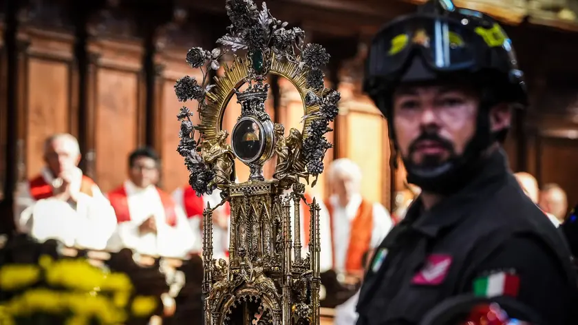 (ANSA) - NAPOLI, 16 DIC - Si è ripetuto il prodigio della liquefazione del sangue di San Gennaro. L'annuncio è stato dato da monsignor Vincenzo De Gregorio, abate della Cappella del Tesoro di San Gennaro, alle ore 9.13. L'avvento del prodigo è stato accolto dall'applauso dei fedeli, ma anche dei turisti, raccolti nella Cappella. Il sangue era 'semi sciolto' quando l'ampolla è stata prelevata dalla teca. Quello del 16 dicembre è il terzo 'miracolo' dell'anno e celebra l'evento del 16 dicembre 1631 quando San Gennaro accolse le preghiere della popolazione e salvo' Napoli dall'eruzione del Vesuvio che la minacciava. Come da tradizione, in attesa dell'inizio delle celebrazioni, le 'parenti' di San Gennaro hanno intonato le litanie per invocare il prodigio. Nella Cappella, tra gli altri, l'assessore al Turismo del Comune di Napoli, Teresa Armato, delegata dal sindaco Manfredi, e il principe Emanuele Filiberto di Savoia. 'Napoli come tutte le città di ieri e di oggi aveva sofferenze, pestilenze, che oggi chiamiamo pandemie, guerre - ha detto monsignor De Gregorio - ma aveva anche il Vesuvio. il rischio che Napoli diventi pizza, mandolino e San Gennaro è sempre grande, quindi lasciamo da parte ogni feticismo". L'ampolla è stata portata in processione nella Cappella così che tutti i presenti potessero vedere. (ANSA).