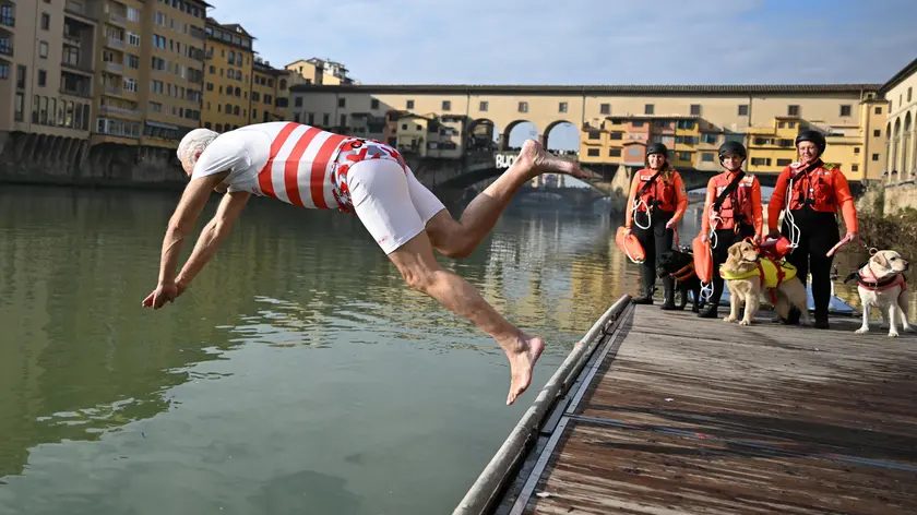 (ANSA) - FIRENZE, 01 GEN - "Forza Toscana, un tuffo in Arno per augurarvi un magico 2026. Solidarietà e pace, ambiente e sport, lavoro e cultura… tante sfide davanti che possiamo vincere insieme. Io sono pronto a dare il massimo e voi?". Così il presidente della Toscana, Eugenio Giani, sui social commenta la foto che lo vede, anche quest'anno, tuffarsi dalla banchina dei Canottieri al Ponte Vecchio nell'Arno. Oggi in Toscana c'è sereno ma vige allerta gialla della protezione civile per ghiaccio e neve. Nei fondovalle la temperatura è andata sotto zero in alcune zone. (ANSA).
