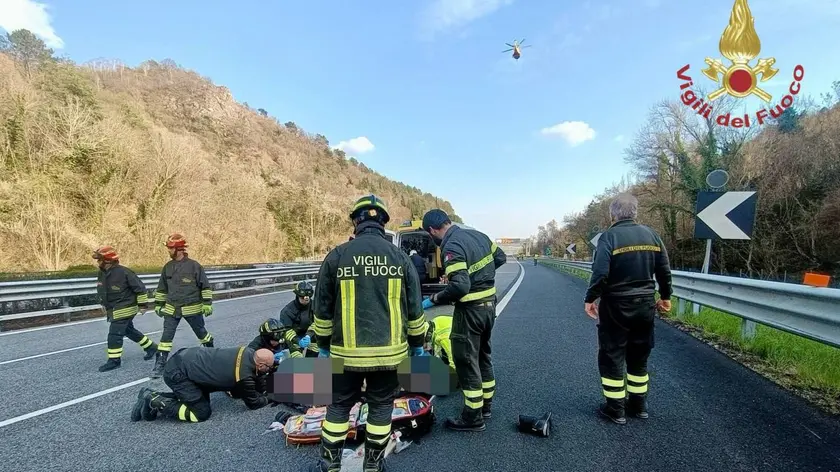 Sbalzato dalla sella, era rimasto privo di sensi sull'asfalto della A27